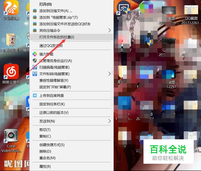 在桌面上找到电脑管家图标,鼠标右键点击,选择:打开文件所在位置。