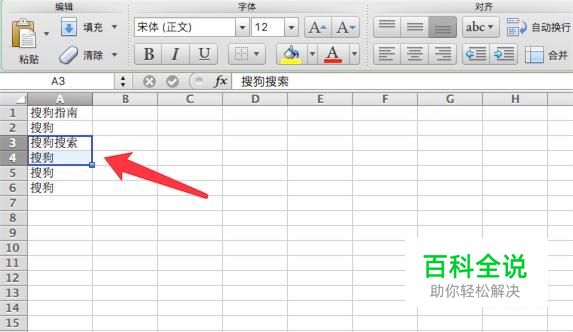 现在可以看到,A3,A4单元格的内容没有显示出来了。(从公式输入框上看,内容还是在的)