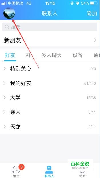 首先登录个人的手机QQ帐号,然后点击左上角的QQ头像。