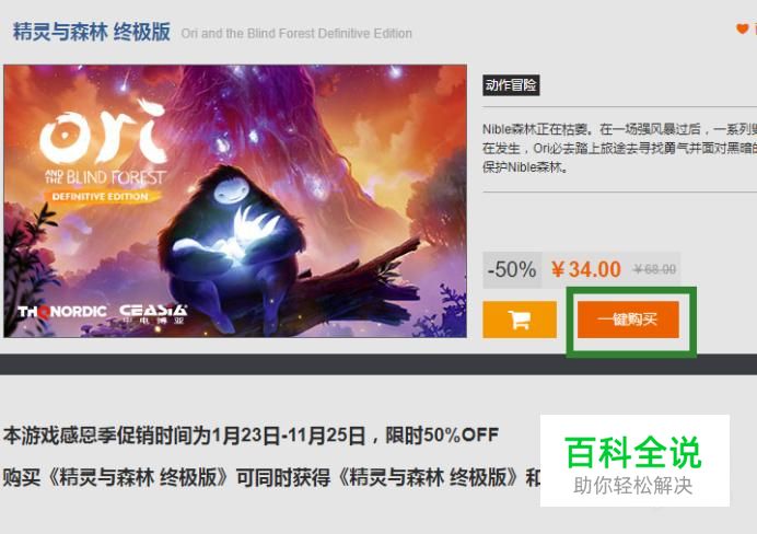 进入奥日与黑暗森林终极版购买界面后,点击一键购买即可(如图所示)。