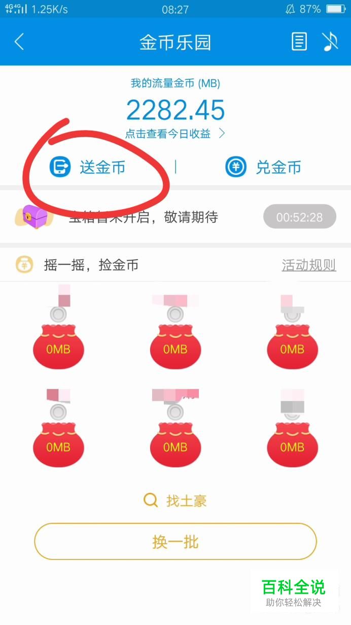 进入“金币”页面后,我们可以看到自己的金币数量,点击“送金币”