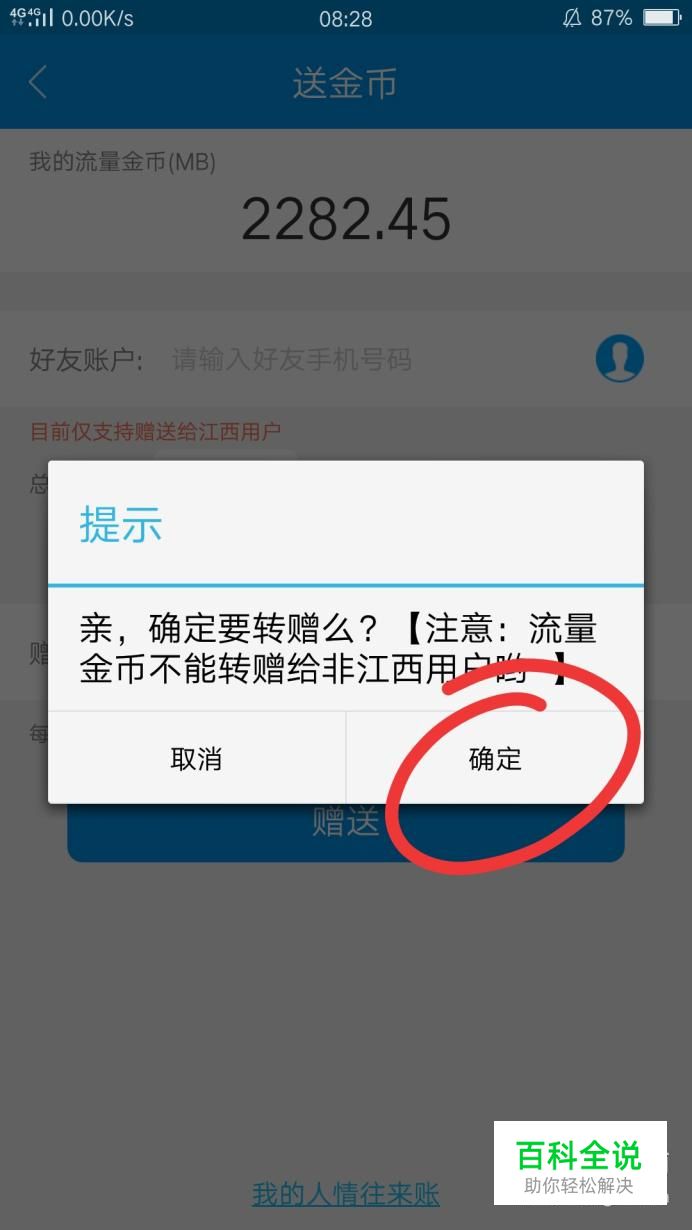 在弹出的的新窗口中点击“确定”,就可以完成送金币了