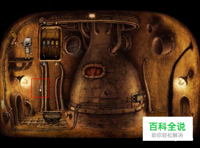 这样大爪子会再次将我们抓起,只是这次它会先绕过燃烧炉。当它移动到管道附近时,点击一下管道,我们就会从爪子那跳进去。这样我们就逃离了燃烧室。
