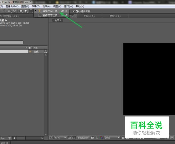 我们找到横排文字工具,快速在合成窗口添加文字内容。