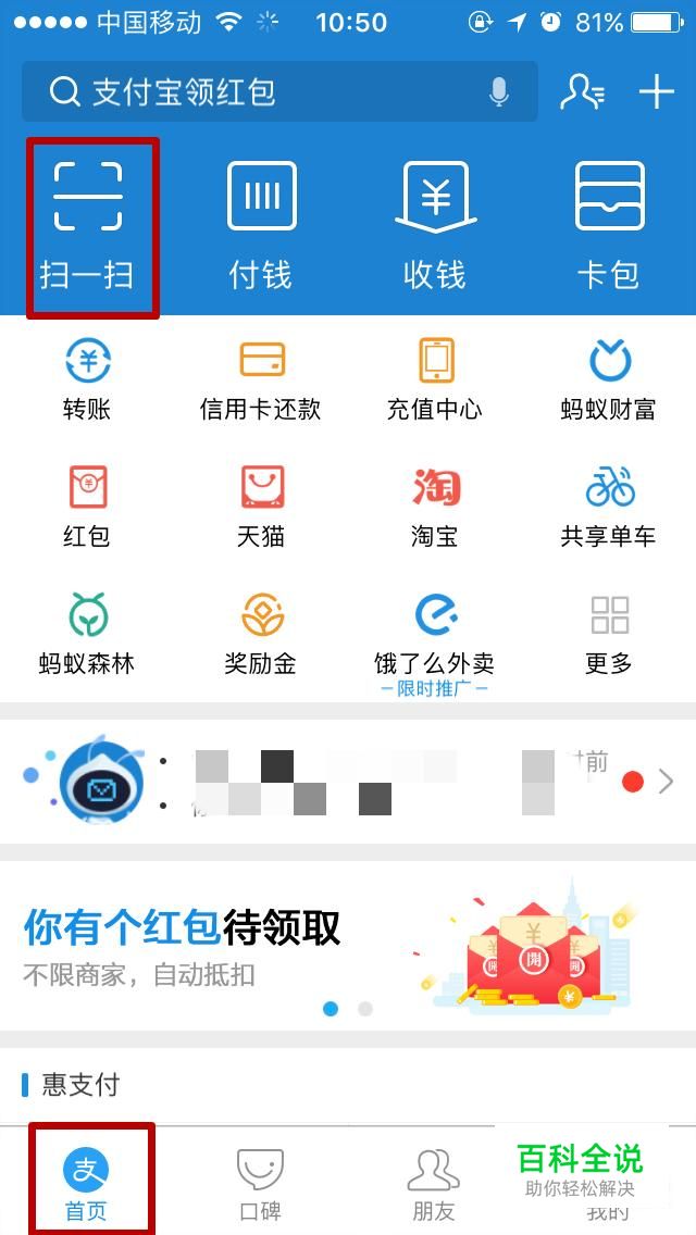 打开手机支付宝,然后登录,登录之后,点击首页的扫一扫;