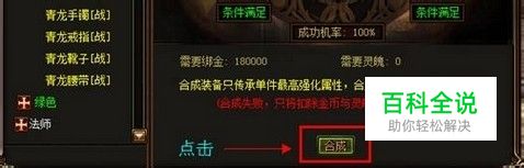 合成规则:装备合成规则为三合一。最低为【裁决】级装备合成,最高为【火龙】级装备合成。
