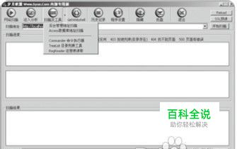步骤1:首先,在win7旗舰版中运行NBSI.exe程序后,单击“扫描及工具”按钮右侧的下向箭头,在弹出的下拉菜单中选择“Access数据库地址扫描”项,如图所示。