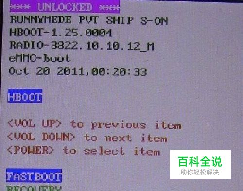 2、进入HBOOT后,再按一下开机键进入FASTBOOT,之后用数据线将手机和电脑连接