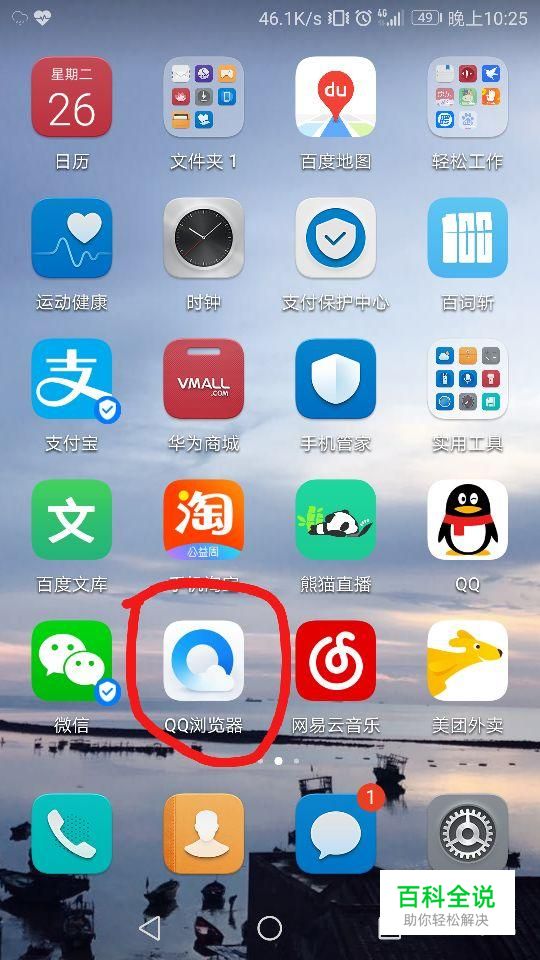 首先点击手机屏幕的QQ浏览器,如图所示。