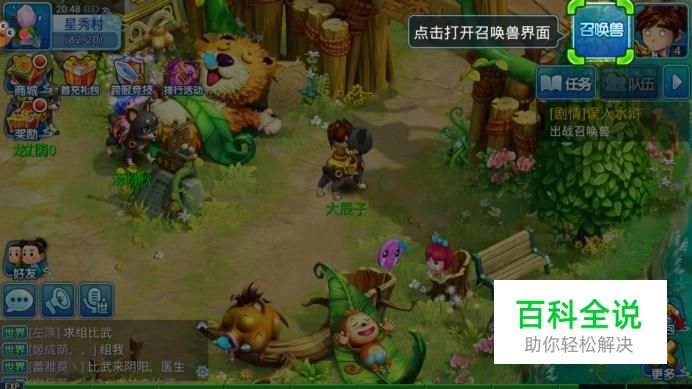 进入游戏主界面,点击上方“召唤兽”进入召唤兽界面。