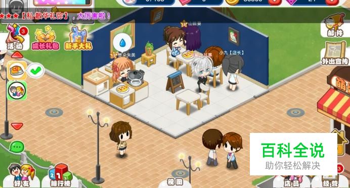 再来看看其他的图标吧。 点击任务就可以查看游戏给予的任务哦,完成任务获取奖励吧。点击好友可以查看好友的餐厅哦。排行榜和邮件就是用于查看信息的,偶尔去看看吧,或许会有惊喜哦!