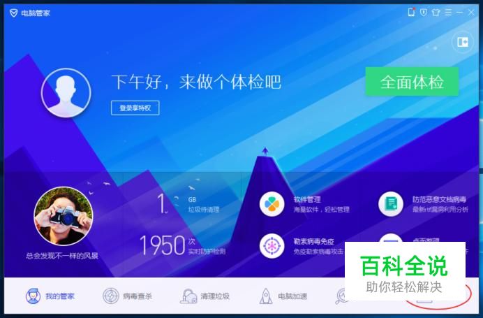 打开电脑管家,选择右下角的“工具箱”。