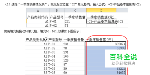 第一小题: 考察vlookup函数的应用,分别求销售总量和销售总额的数据,别输错单元格即可。下面是具体的操作步骤和截图。