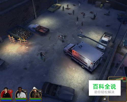 出了公园后先向左走,途径一辆翻到的救护车可以拾取血袋。血袋的用法是丢到丧尸身上,这样别的丧尸就会围上去攻击被血袋打到得丧尸。过了救护车后继续向前走会来到图书馆的后门,进入后关住门,让警察在这里等待,下面的丧尸数量非常多,这里推荐大家一个小技巧。