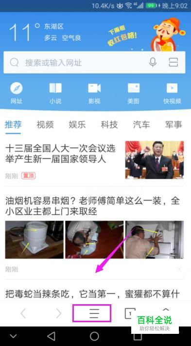 来到了360浏览器界面,我们点击中间位置的三横线,如图。