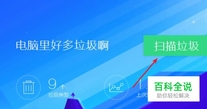 打开后,先点击扫描按钮,把电脑里的垃圾文件扫描出来。