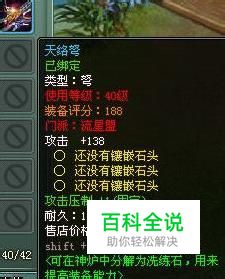 看到极品镶嵌的宝石是普通攻击、暴击和远程攻击。 普通攻击和远程攻击都好理解,为什么要镶嵌暴击石头呢?因为这个属性是强化不出来的!只能通过洗炼和镶嵌宝石来实现! 没有镶嵌过宝石是这样的,攻击只有138,评分也只有188,镶嵌一下3级宝石试一试