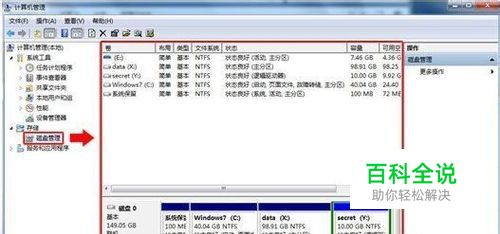 有的时候,就算是隐藏起来,却还是会被查找到,那么怎么能让它们看起来从不存在却又还是完好无损的、安安静静的继续躺在硬盘的小角落里面呢? 下面我们来看看这个小伎俩。 文章以上图的 [ secret (Y:) ] 这个磁盘为例。 首先右键单击 [ 计算机 ] ,选择 [ 管理 ] 。