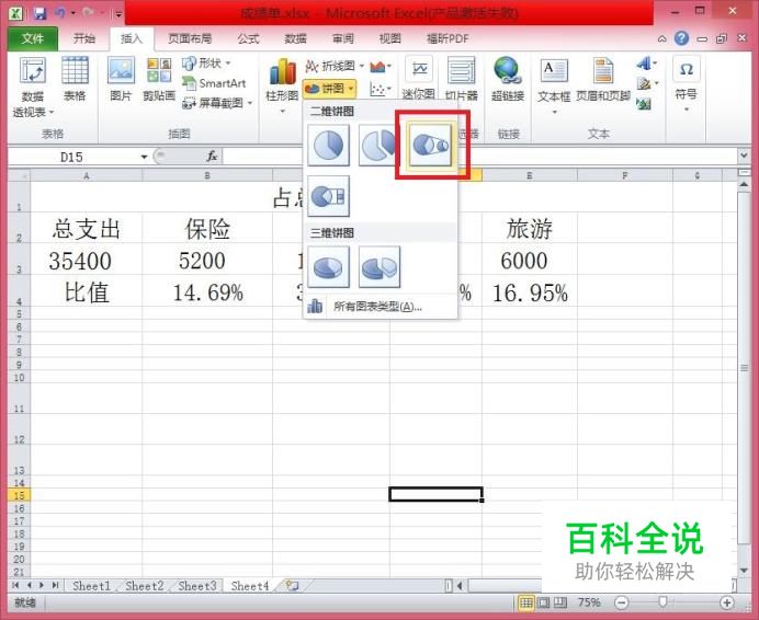 打开“插入”选项卡,并找到饼图中的“复合饼图”