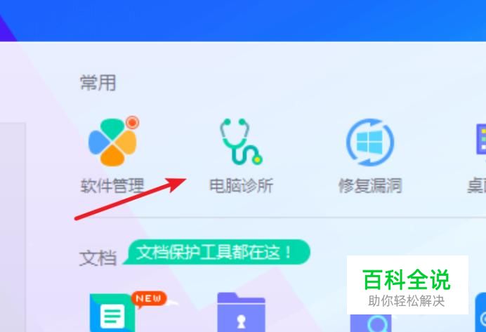 在电脑诊所页面,可以看到桌面图标的问题,点击里面的‘图标消失’