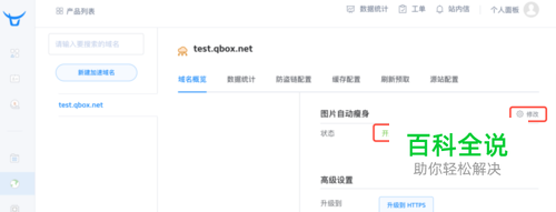 在 域名概览 页面可看到 图片自动瘦身功能的状态已为 开启