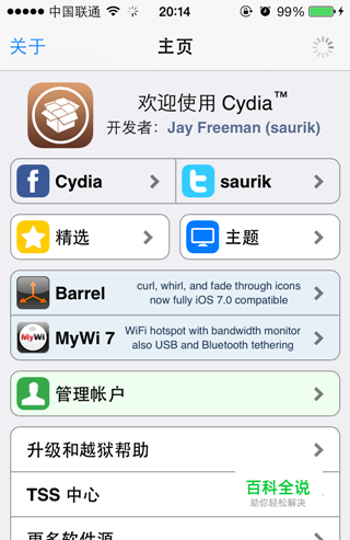 打开Cydia 程序(等待Cydia加载完成再进行下一步操作)