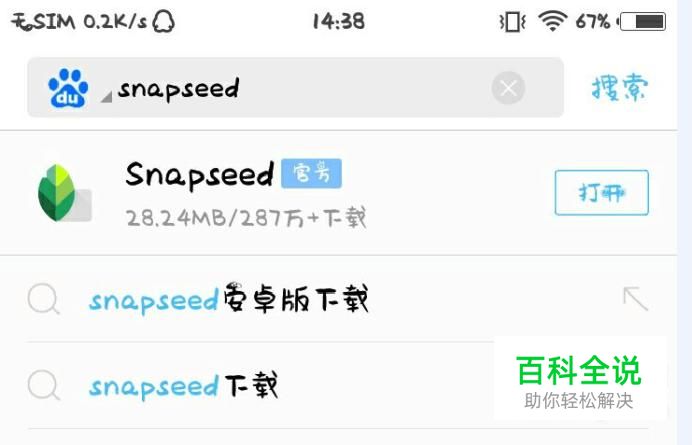 下载并安装snapseed到手机。