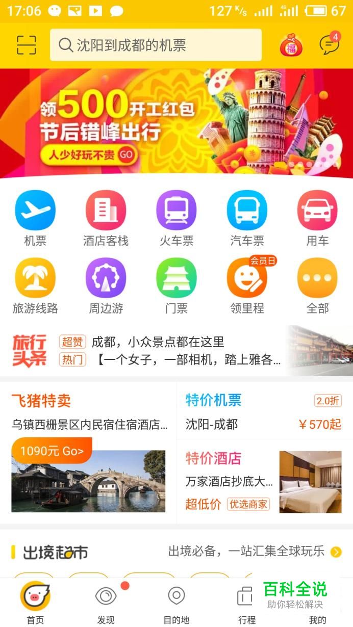 打开手机找到手机中的飞猪,然后打开飞猪进入飞猪的首页。