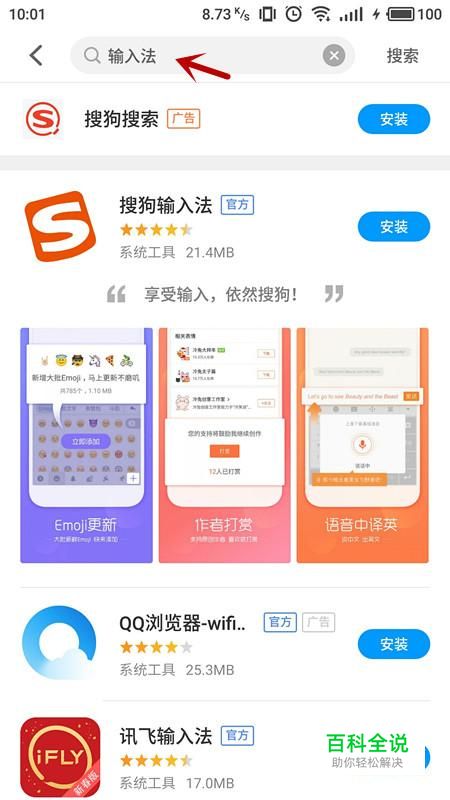 在应用商店中,搜索自己想要使用的输入法,进行下载安装。
