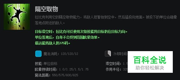 隔空取物可以将敌方单个英雄举到空中然后落下时砸晕其他单位并造成伤害。
