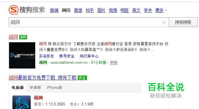 首先搜狗搜索输入“战网”,并选择官网进入,并登陆