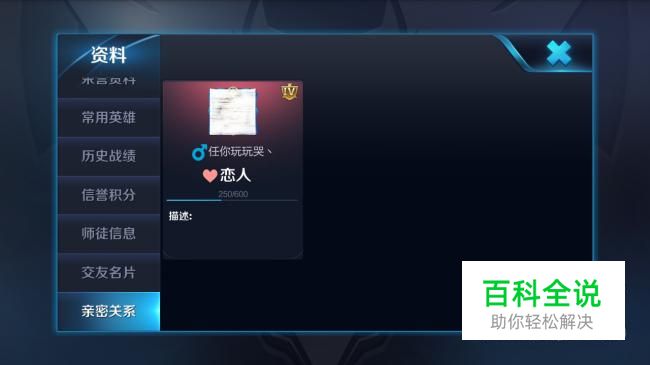 在点击左边通知栏菜单中的“游戏好友”菜单按钮后,选择游戏屏幕右下角的“亲密关系”。