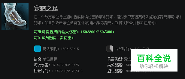 寒霜之足是冰魂对选定英雄施放技能造成持续伤害,在4秒内未离开释放点范围,对其造成冰冻眩晕效果。