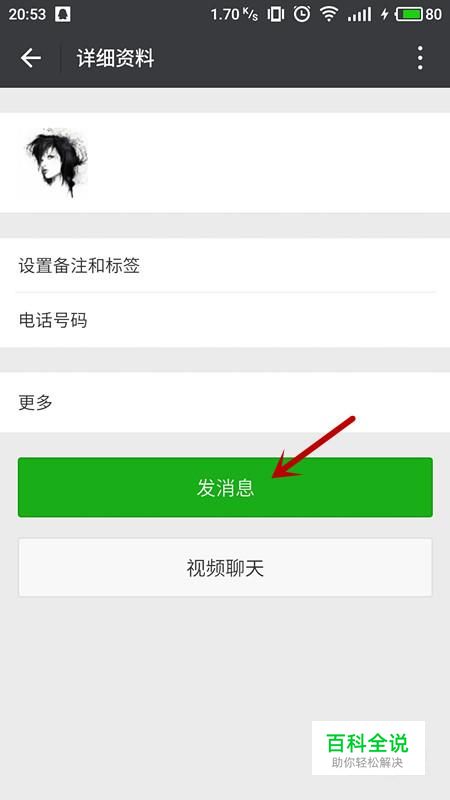 进入好友详细资料后,选择“发消息”