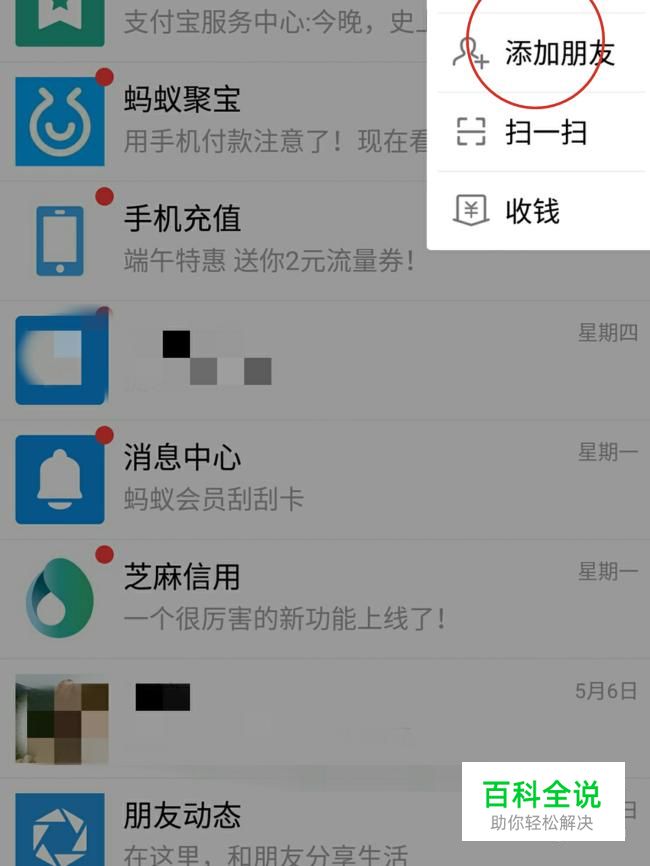 怎么样生成自己的支付宝吱口令,点击进入朋友界面,点击右上角的+图标,弹出功能菜单中选择添加朋友。