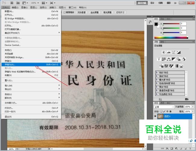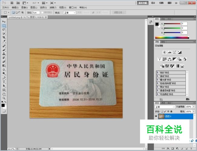 打开Photoshop程序,并打开身份证图片。如图所示: