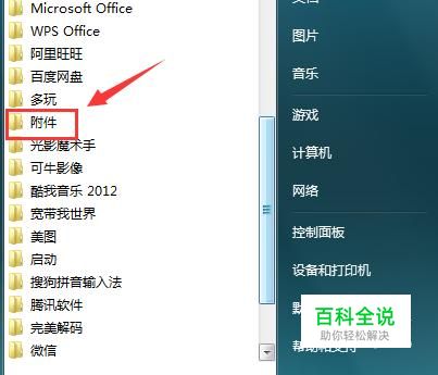 点击附件选项,在其内找到记事本选项,如图所示: