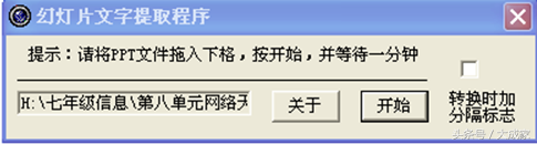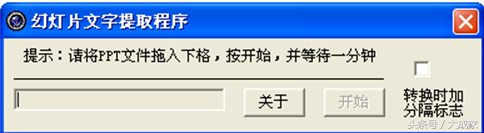 2.将欲操作的PPT文件拖入程序,按程序界面中的“开始”按钮即可。操作过程中幻灯片和Word文档自行活动,不必担心。转换时间视幻灯片文字多少而定,一般1至2分钟搞定。转换结束后程序自动退出。如图二