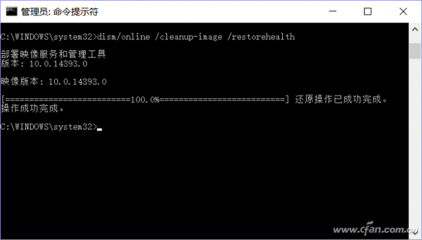 继续在命令提示下输入“DISM /Online /Cleanup-image /RestoreHealth”,这样DISM会自动联机到微软官方服务器,将受损组件和官方原版镜像里的组件进行对比。可以将那些不同的系统文件(或者受损系统文件,自然包括出现故障的应用商店组件)还原成官方系统源文件,但是其他的第三方软件和用户设置完全保留。这样通过DISM命令的扫描和修复后一般就可以解决应用商店无法正常运行的故障。