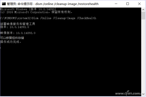 执行上述命令后,DISM会对Windows 10所有组件进行扫描(包含且不限于应用商店等系统组件无法使用的情况),如果出现“可以修复组件存储”的提示,则表明有些系统组件已经受损出现问题。