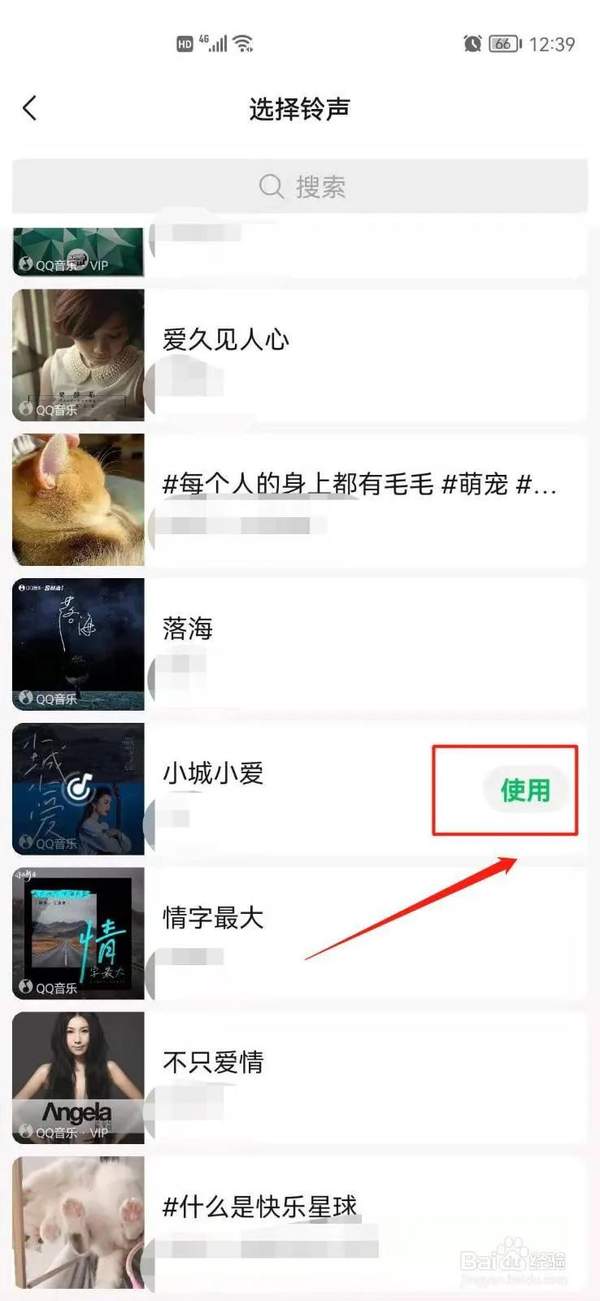 4/4选择音乐点击【更换铃声】,选择自己喜欢的音乐,点击铃声右侧的【使用】,