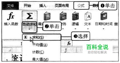 选择“求和”选项 切换至“公式”选项卡,在“函数库”组中单击“自动求和”按钮,在弹出的下拉列表中选择“求和”选项。