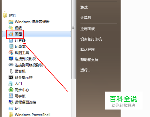 在弹出的菜单列表中依次点击“所有程序”-“附件”-“画图”选项。