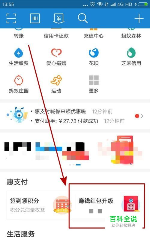 我们进入自己的支付宝之后向下拉可以看到惠支付专栏的“赚钱红包”活动,我们点击进入。
