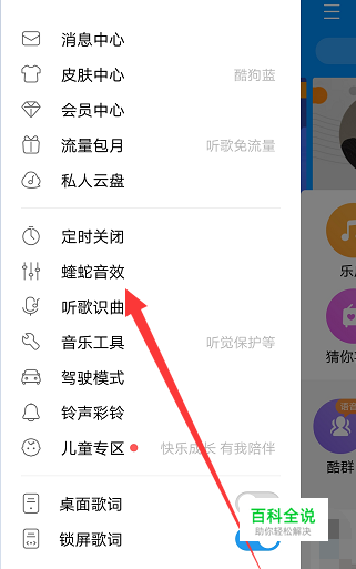 点击后弹出侧边框,然后选择【蝰蛇音效】。