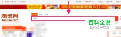 在电脑上打开“淘宝”首页,并在搜索框中输入“UDID”,然后点击后方的“搜索”按钮并点击进入下一步。