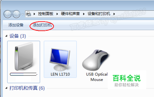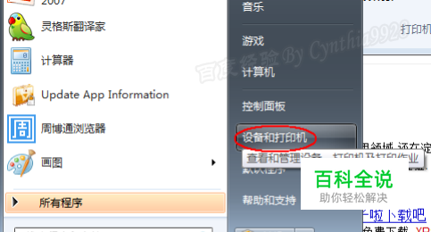 点击左下角的“开始”按钮,选择“设备和打印机”: