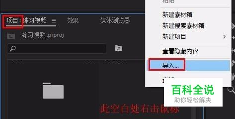 1、打开pr,在“项目”面板空白处右击鼠标导入素材 将素材拖到编辑轨道中轨道