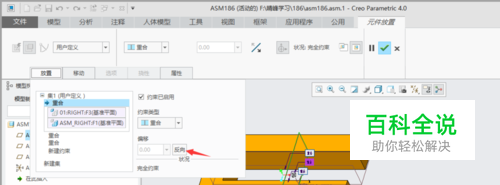 单击”ASM_RIGHT“和”RIGHT“两个基准面创建第一组约束。
