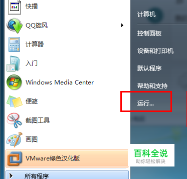 我们点击开始菜单,然后选择运行命令,如图: